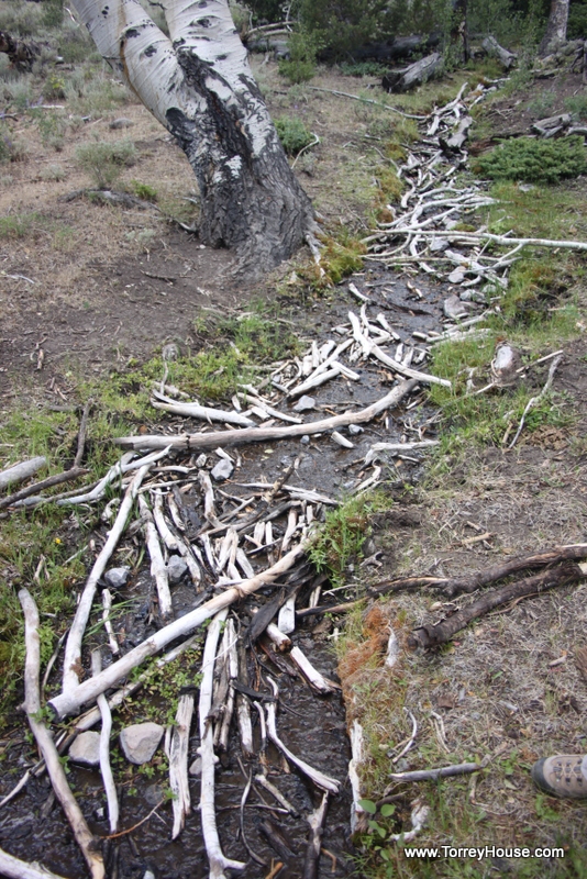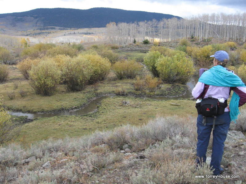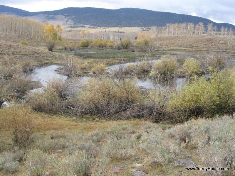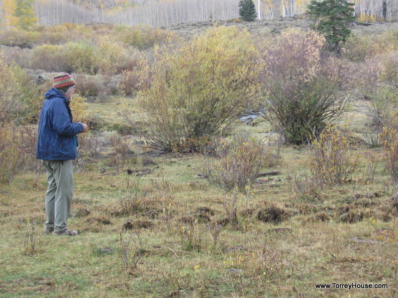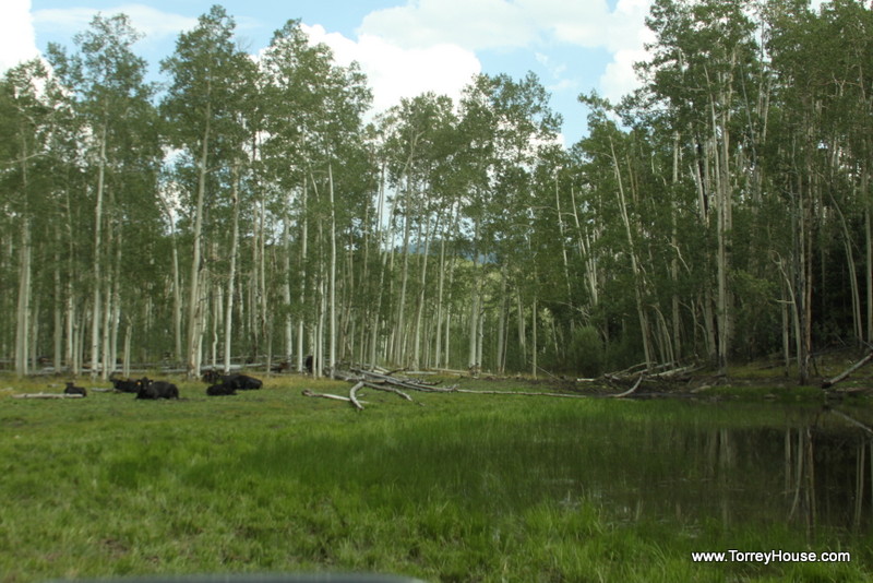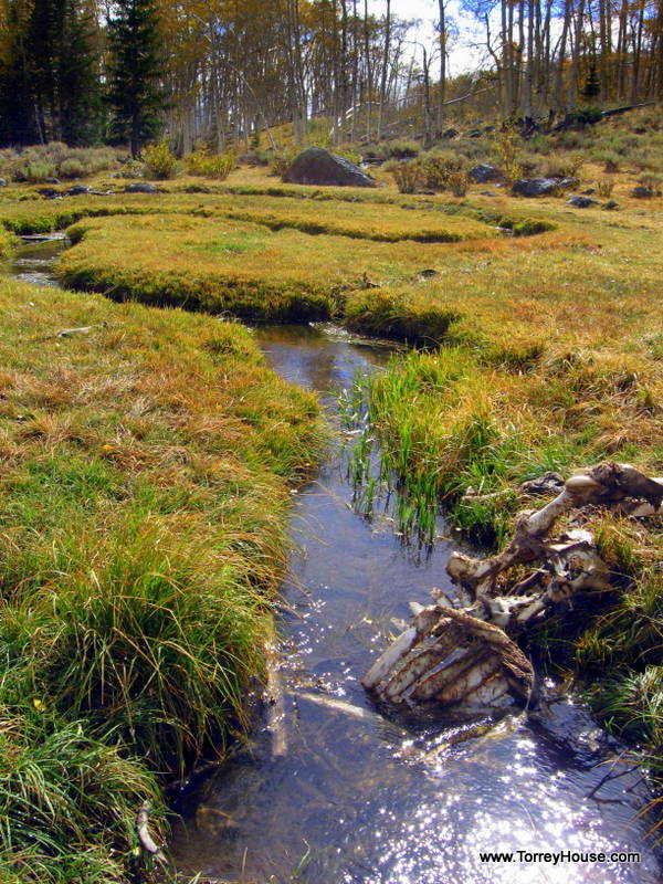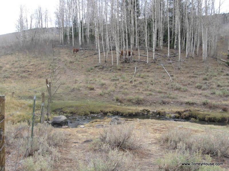 It is wolves and other predators that keep ungulates on the move in riparian areas allowing the supporting undergrowth like the grasses, wildflowers, and the cottonwoods, aspen and willows to prosper. That bugs ranchers so even federal agencies like the so called “Wildlife Resources” spend millions making creeksides like this one a virtual private ranch where, as if they are the only concern, there is no need to monitor and manage the cows. A half a dozen of the hooved locusts were munching nearby.